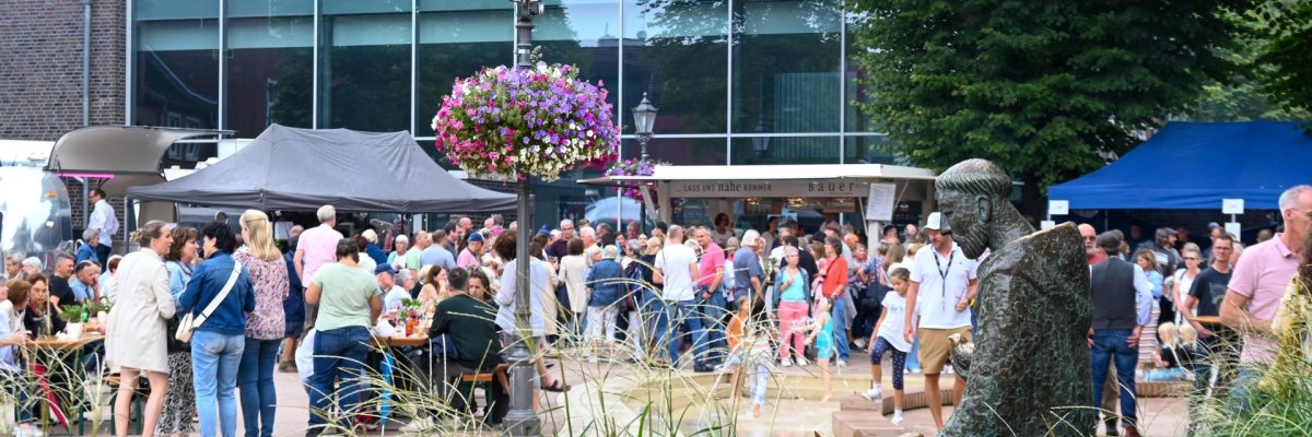 Der Abendmarkt auf dem Franziskanerplatz in Erkelenz findet jährlich an jedem ersten Donnerstag im Juli, August und September statt. Von 17 bis 21 Uhr wird Besucherinnen und Besuchern ein abwechslungsreiches Markterlebnis in entspannter Atmosphäre geboten.