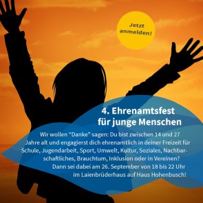 Hier könnt ihr euch zum Ehrenamtsfest für junge Menschen anmelden: