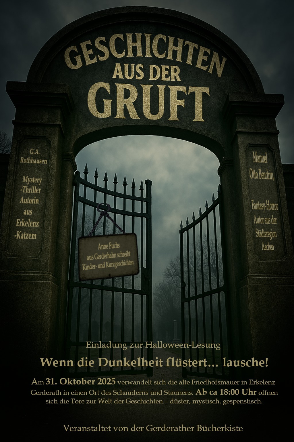 Aus gegebenem Anlass veranstaltet die Gerderather Bücherkiste eine besondere Lesung in Gerderath: „Geschichten aus der Gruft“