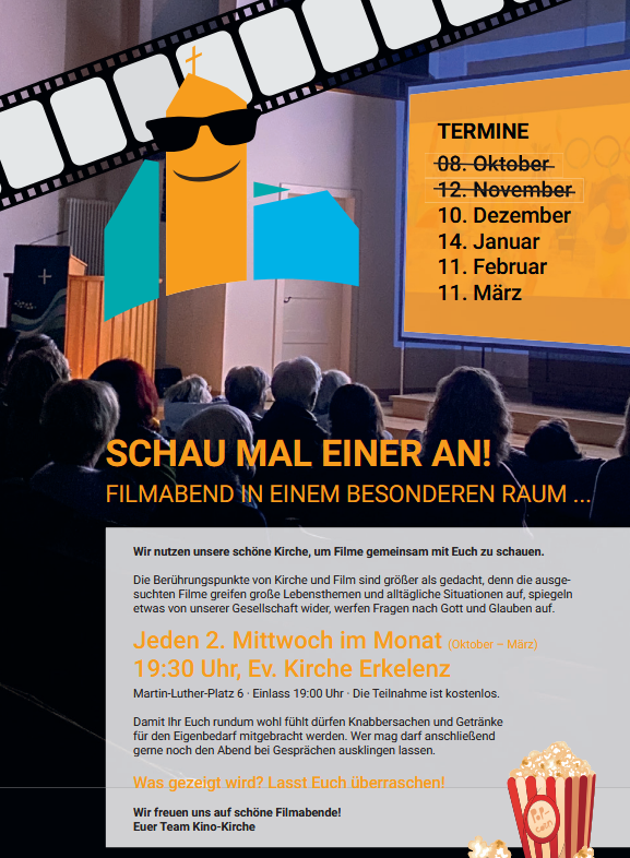 Die Kino-Kirche lädt ein zu bewegenden Filmen über das Leben, den Glauben und alles dazwischen. Snacks dürfen mitgebracht werden.