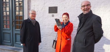 Am 16. Dezember um 11 Uhr wurde die erste Plakette am Alten Rathaus angebracht. Rita Hündgen, neue Vorsitzende des Heimatvereins, scannte den QR-Code und sogleich öffnete sich das Virtuelle Museum.