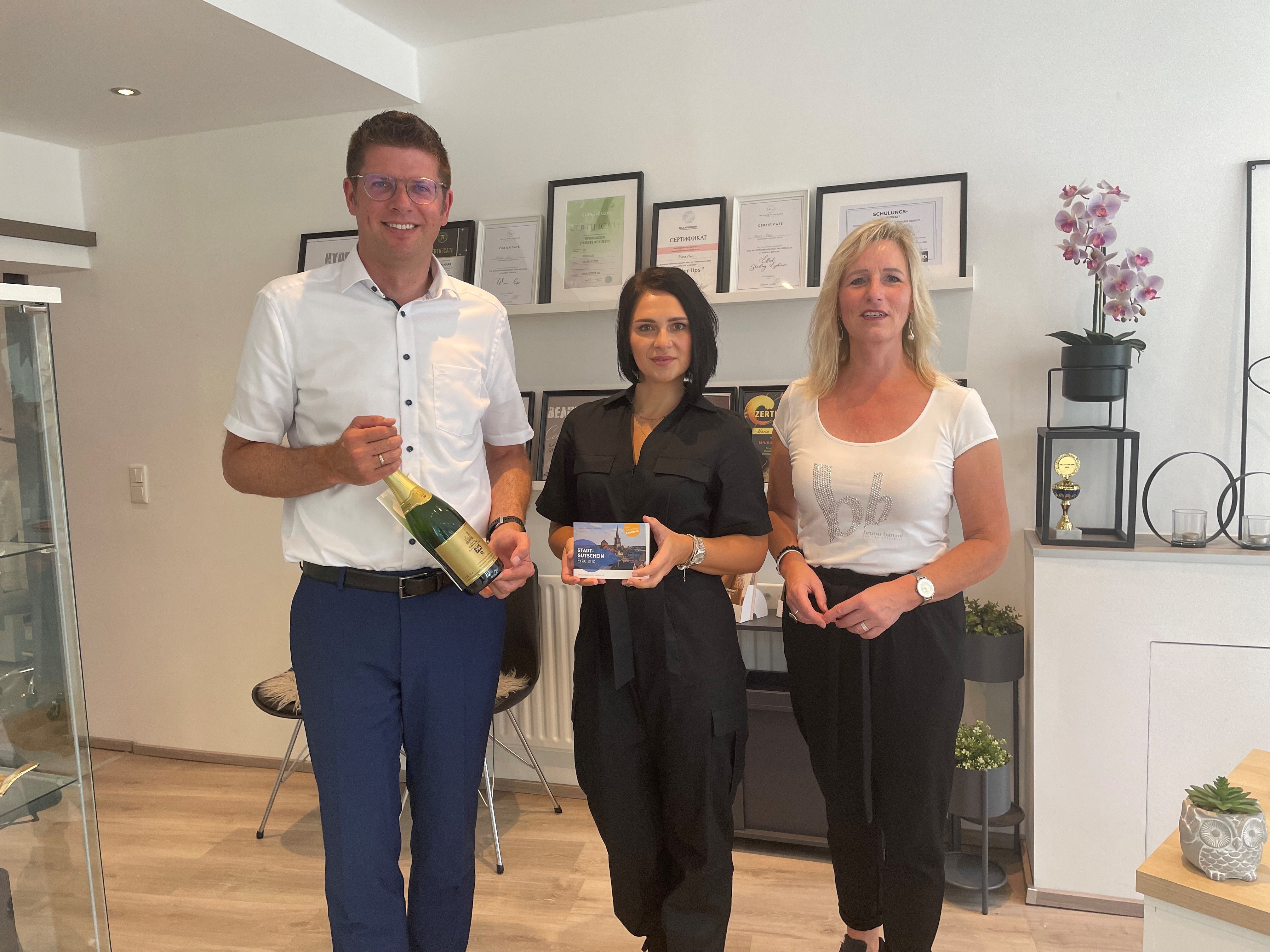 Eine neue Anlaufstelle für Themen rund um die Schönheit befindet sich an der Kirchstraße 8. Hier hat sich Beauty-Spezialistin Maria Haas eingerichtet und bietet unter anderem Permanent Make-Up, Wimpernverlängerung, Augenbrauenstyling und Hautpflegeberatung. Bei ihrem Besuch besichtigten Stephan Muckel und Karin Jentgens die ansprechend gestalteten Räume und erfuhren, dass das Angebot bereits gut angenommen wird. Maria Haas ist schon länger selbstständig in ihrem Bereich und hat ihr Studio nun in die Erkelenzer Innenstadt verlagert.