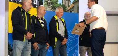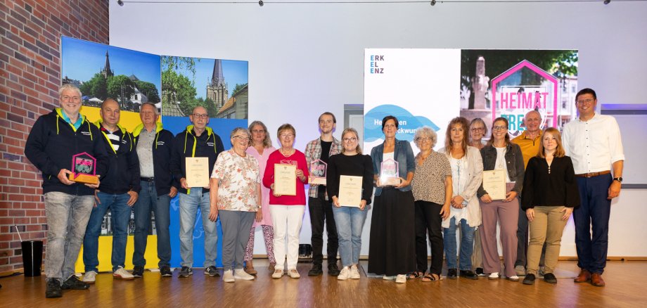 Anpacken, instandhalten, einfach machen: Der erste Platz des Heimatpreises wurde dem Männerstammtisch Golkrath überreicht. Ob durch die Pflege des Ehrenmals, Hilfe beim Auf- und Abbau der jährlichen Adventsveranstaltung, der Renovierung der Merzweckhalle oder die Teilnahme am „Dreck-Weg-Tag“ – die Golkrather Männer sind seit 2011 immer dabei. Freuen dürfen sie sich über den ersten Platz, der mit 2.500€ Preisgeld dotiert ist und ebenfalls einen Pokal enthält.