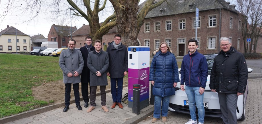 „Die Transformation gelingt nur zusammen“, sagte Bürgermeister Stephan Muckel beim Blick auf den Ausbau der Elektroenergie im gemeinsamen Pressetermin mit der NEW. Exemplarisch wurde eine neue E-Ladesäule vor der Kirche in Holzweiler präsentiert, die vor kurzem in Betrieb genommen wurde. „Die Ladesäule wird bereits sehr gut angenommen“, informierte Johannes Vieten (NEW) weiterhin.