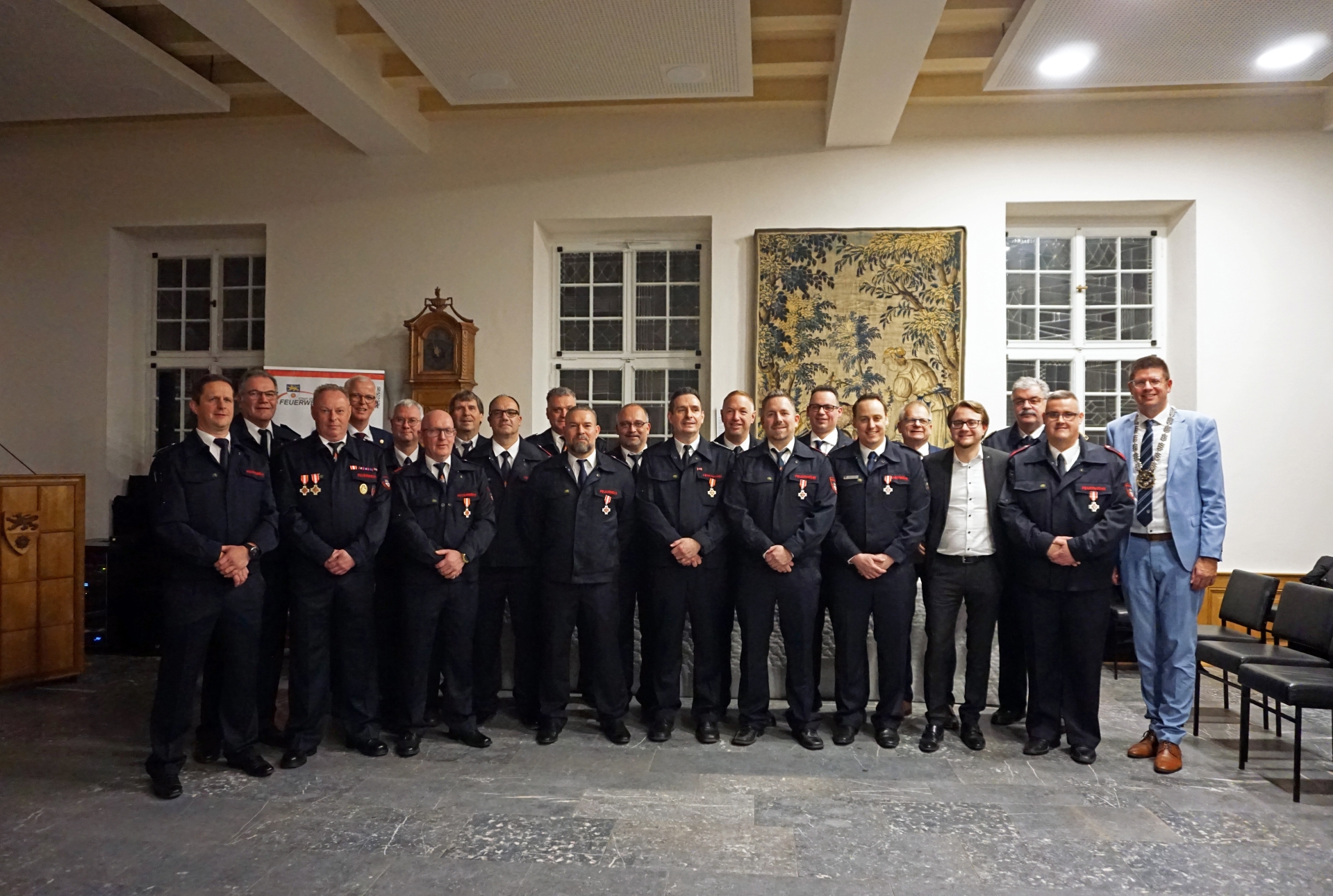 Zum 35. Mal fand die Feierstunde statt, bei der Feuerwehrleute für ihren aktiven Dienst in der Freiwilligen Feuerwehr Erkelenz geehrt wurden. Im Alten Rathaus wurde am 12. Dezember sieben Mal das Feuerwehrehrenzeichen in Silber für 25 Jahre, sechs Mal das Feuerwehrehrenzeichen in Gold für 35 Jahre …