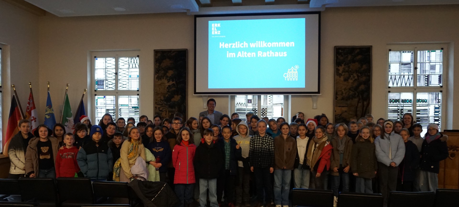 Im Rahmen ihres Politikunterrichts besuchten alle 5. Klassen des Cornelius-Burgh-Gymnasiums die Stadtverwaltung. Die Kinder ließen sich von Bürgermeister Stephan Muckel erklären, wie eine Stadt funktioniert und stellten ihm neugierig ihre Fragen.