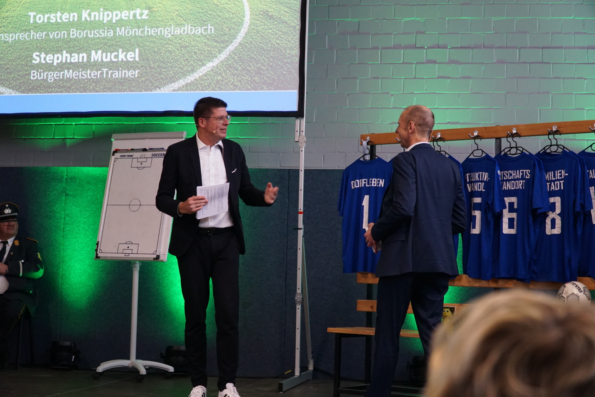 Unsere Startelf für Erkelenz: Gemeinsam mit Borussia Mönchengladbachs Stadionsprecher Torsten „Knippi“ Knippertz führte Bürgermeister Stephan Muckel am vergangenen Samstag durch einen unterhaltsamen Neujahrsempfang in der Golkrather Mehrzweckhalle. Die zentralen „Spieler“ der Stadt Erkelenz bildeten …