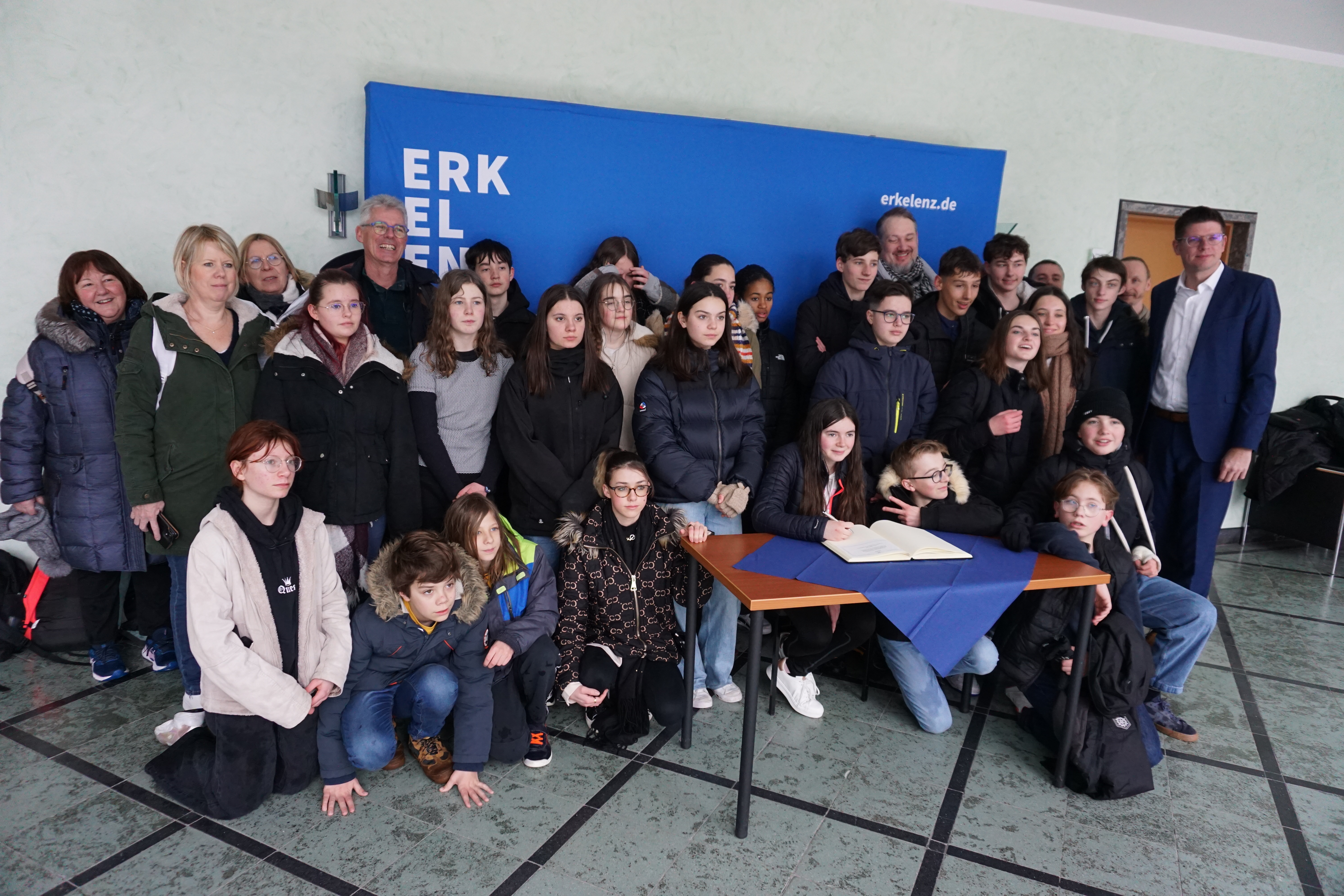 Mit einem Schüleraustausch fördert die Europaschule der Stadt Erkelenz die deutsch-französische Freundschaft. Derzeit sind 31 Schüler*innen von Partnerschulen aus Saint James und Granville zu Gast in Erkelenz. Ein Besuch der Erkelenzer Stadtverwaltung fand am 9. März statt.