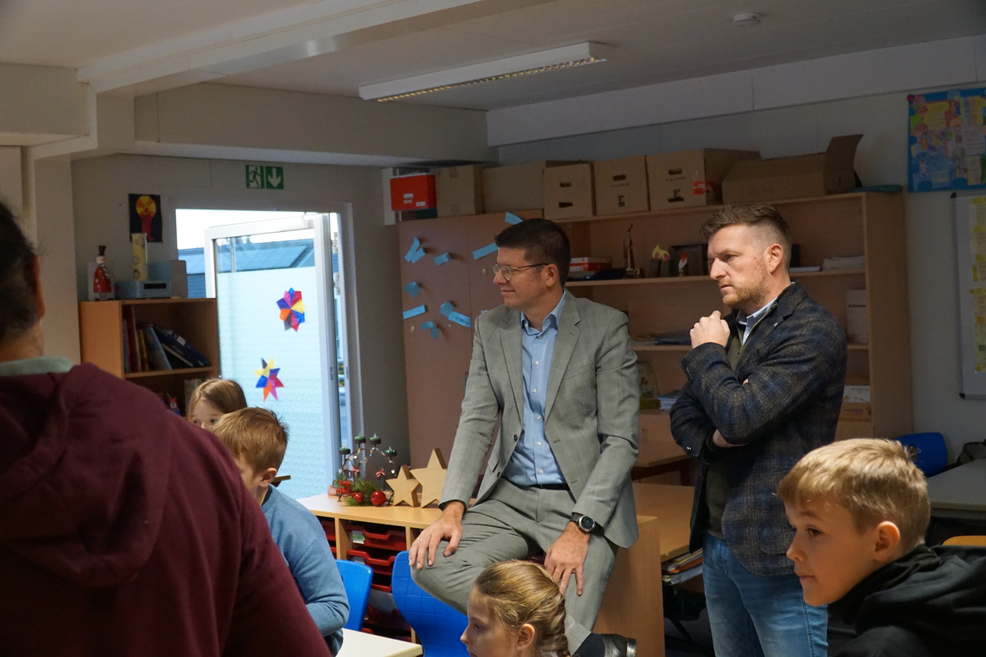 Ein Pädagoge der Deutschen Umwelt Aktion hat in der letzten Woche gemeinsam mit Bürgermeister Stephan Muckel und Klimaschutzmanager Benedikt Wouters die Grundschule in Kückhoven besucht. Auf dem Plan stand das spielerische Erleben von Energiegewinnung.