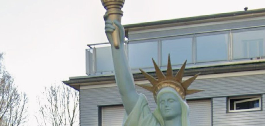 Die Freiheitsstatue am Konrad-Adenauer-Platz wurde Mitte März durch die Stadt Erkelenz entfernt, weil ein rechtmäßiger Eigentümer nicht ermittelt werden konnte. Damit war sie als Fundsache zu behandeln und musste sechs Monate verwahrt werden. In dieser Zeit hat sich der rechtmäßige Eigentümer nicht gemeldet, sodass sie nun versteigert wird.