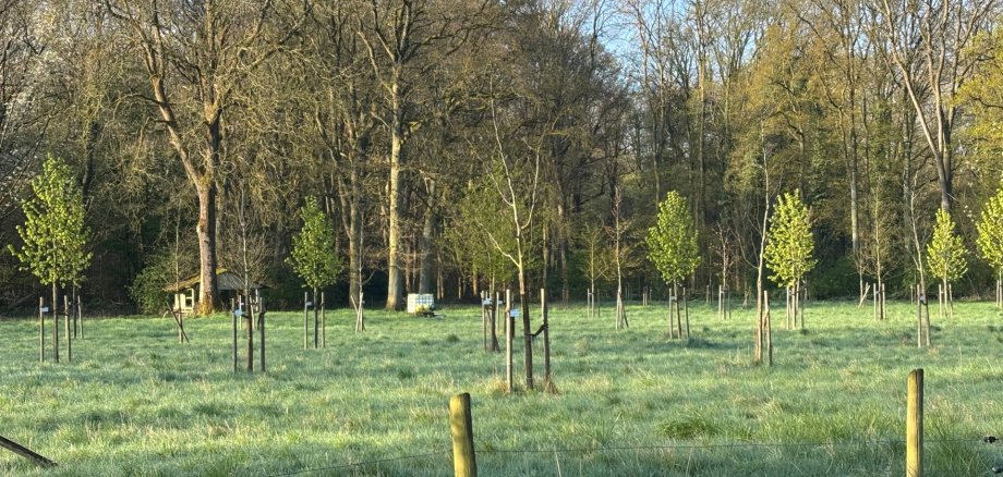 Nun wurden sie im Bürgerwald im Wahnenbusch aufgestellt. Die Bürgerschaft kann so ihre gespendeten Bäume wässern – der Baubetriebshof kümmert sich darum, dass die Container mit Wasser gefüllt sind.